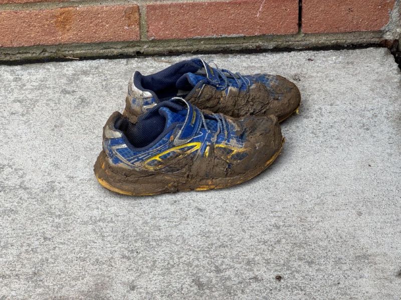 On a day when the young home-schooled children were in the parish hall for a day of interacting with other young boys and girls (a day when they obviously had some outdoor fun time as well) – I can just picture a mom scolding: “Don’t you DARE step foot into God’s house with those shoes on!”