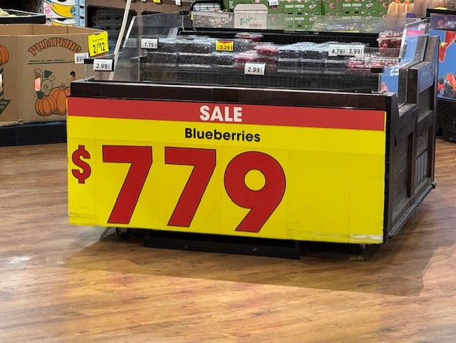 Those were some pretty expensive blueberries in the supermarket today! My wife commented that they must be pregnant blueberries because she thinks they missed their period.